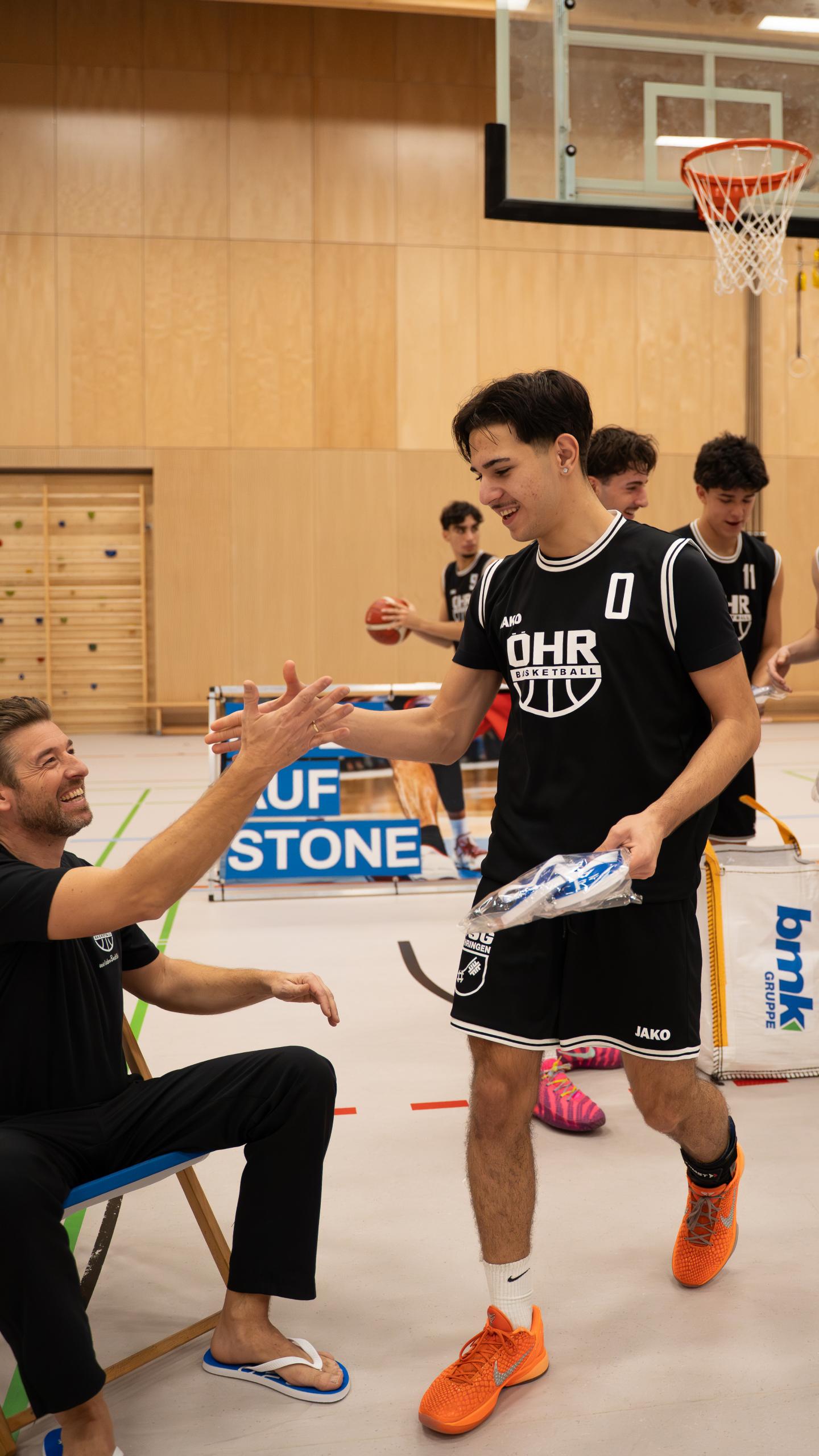 Und ganz ehrlich: Wir kamen nicht nur zum Übergeben, sondern auch zum Staunen. Eine echte Showeinlage lieferte Spieler mit der Nummer 9, der mit einem satten Dunk inklusive kurzem Hängen am Ring die Halle zum Raunen brachte. Starkes Timing, starke Aktion.