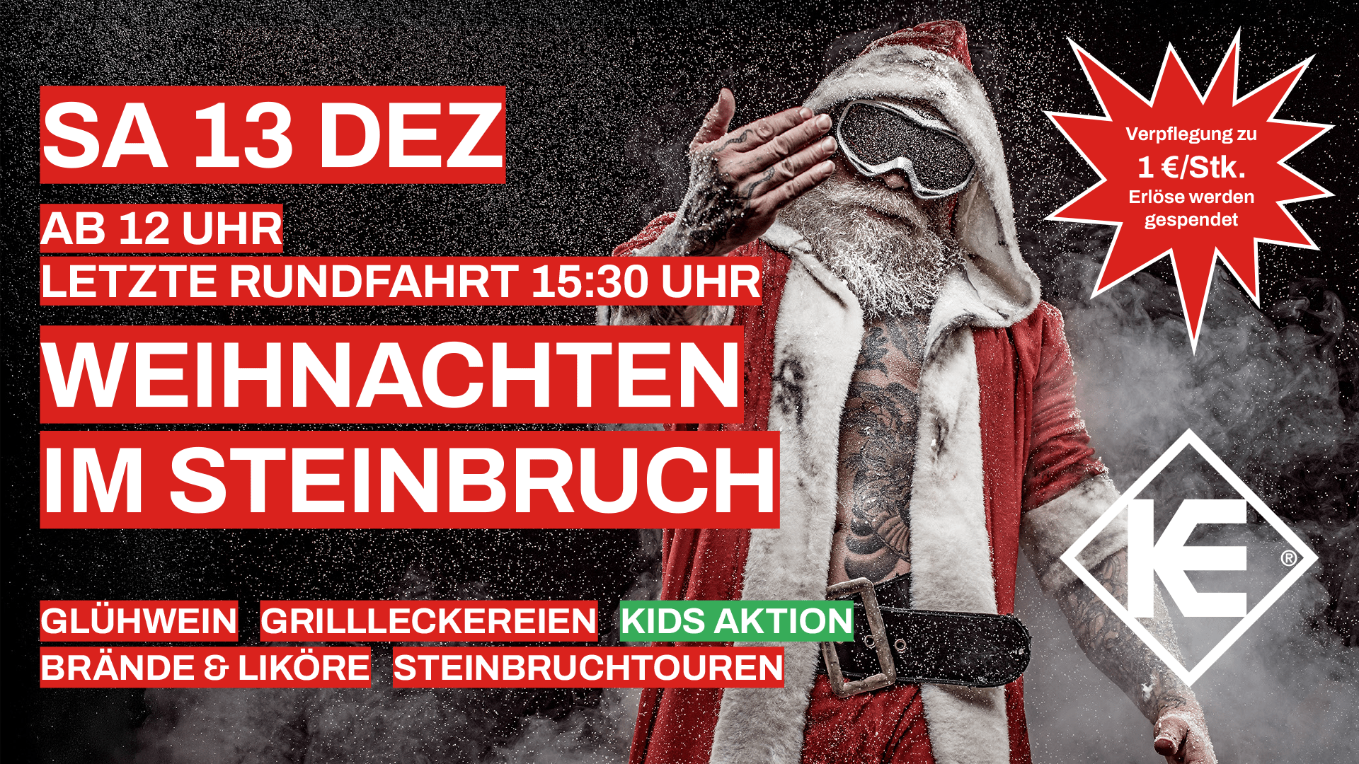 WEIHNACHTEN IM STEINBRUCH – laut, lässig, legendär. Komm vorbei, bring Familie & Freunde mit – alle sind herzlich eingeladen!
